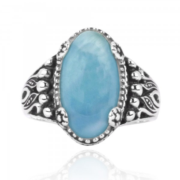 MTJ-NRB6919-LAR-WHCZ - Sterling Silver Conch Shell Ring with Larimar