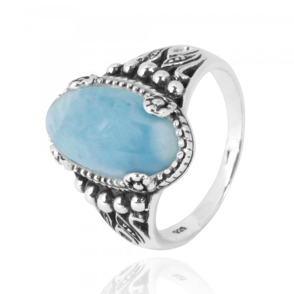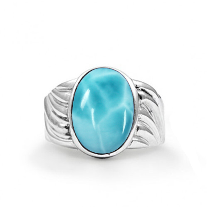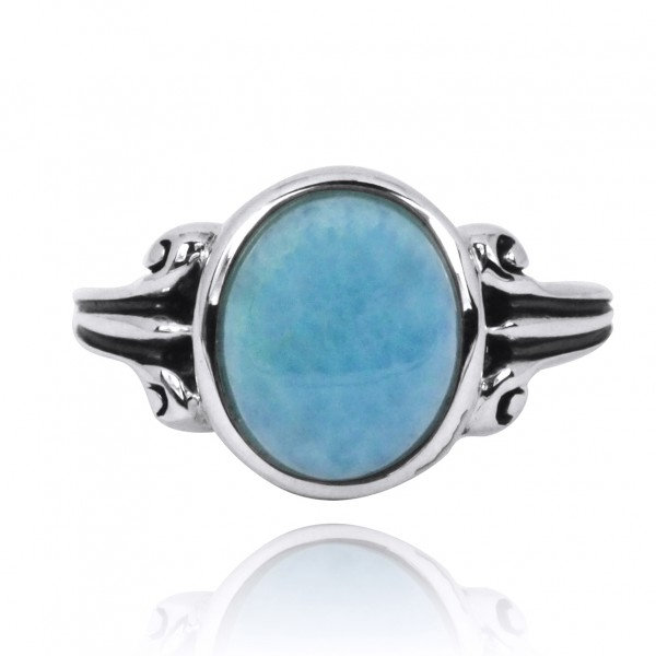 MTJ-NRB8368-LAR-WHCZ - Sterling Silver Whale Tail Ring with Larimar Gemstone