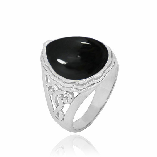 MTJ-NRB7224-LAR - Sterling Silver Turtle Ring with Teardrop Larimar