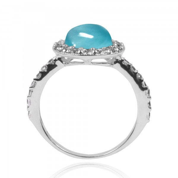 MTJ-NRB6464-LAR-WHT - Round Shape Larimar Cocktail Ring