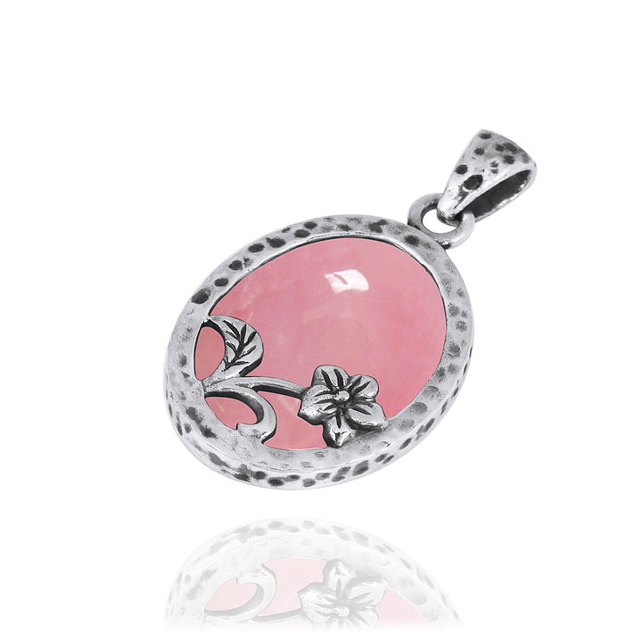 MTJ-NP8166-PPKOP-Elegant Oval Flower Design Silver Pendant with Peru Pink Opal